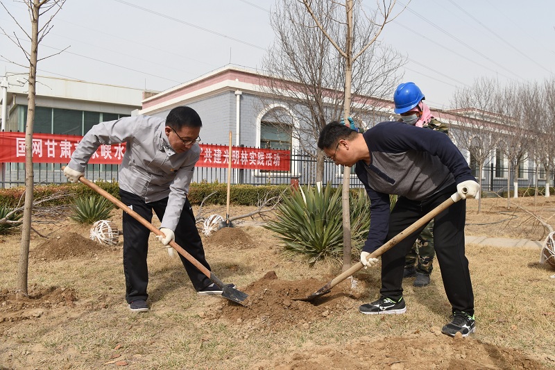 活动现场,三四人一组,挥锹、培土、浇水,大家干劲十足,一片热火朝天的劳动景象。在众人的合力下,经过1个多小时的挥汗奋战,共栽下樱花、碧桃、银杏等30余颗树苗,随后各党员代表还参观了刘家峡水电厂红色教育基地,活动充分体现了中央驻甘单位的社会责任感和使命感。