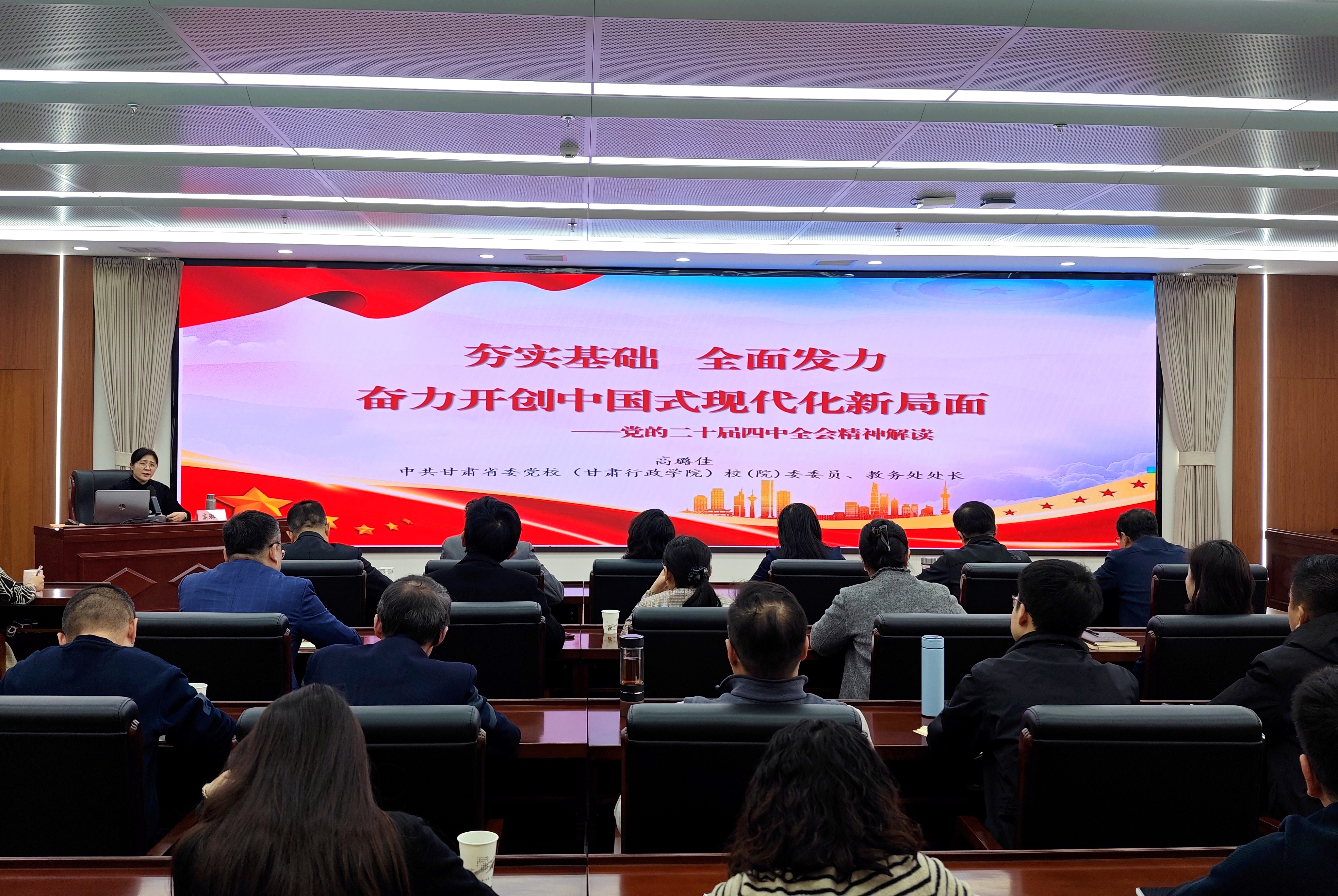 为深入学习领会党的二十届四中全会精神实质、核心要义和实践要求,切实把思想和行动统一到党中央决策部署上来,11月27日,甘肃省通信管理局、国家互联网应急中心甘肃分中心联合举办党的二十届四中全会精神专题辅导报告会。特邀中共甘肃省委党校(甘肃行政学院)校(院)委委员、教务处处长、省委讲师团成员高璐佳作专题报告,全体党员干部职工参加。