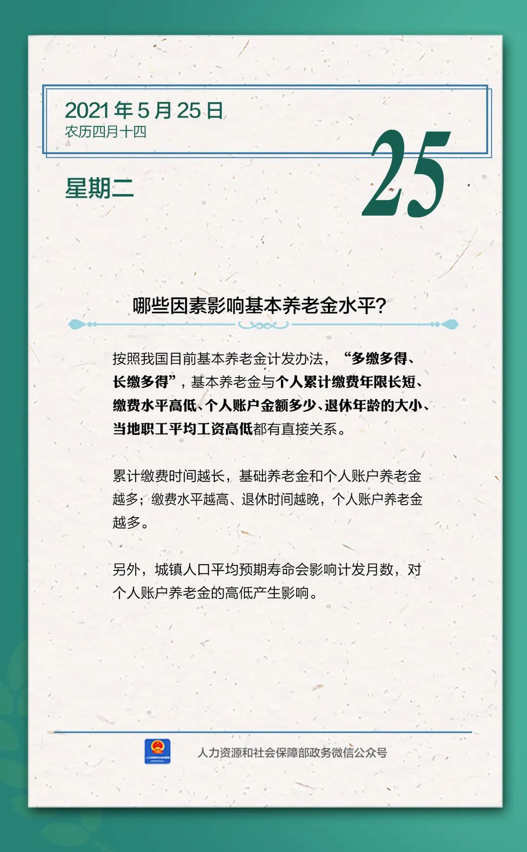 【人社日课·5月25日】哪些因素影响基本养老金水平?